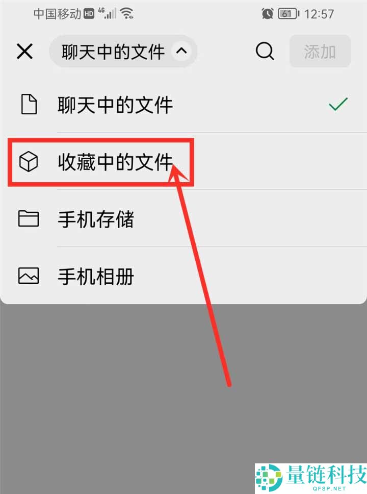 4、接着进入添加文件,选择“收藏的文件”。