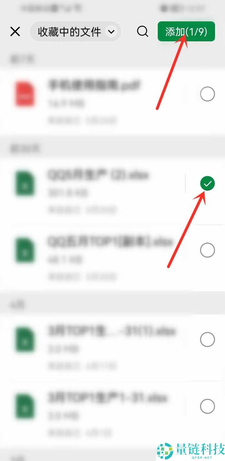 5、进入收藏的文件,勾选文件,点击右上角“添加”按钮。