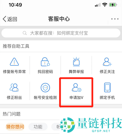 2、然后在客服中心设置页,进入“申请加V”界面。