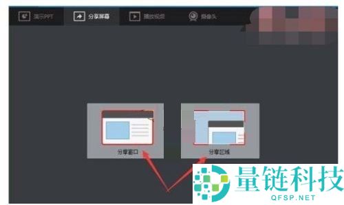 2、然后在腾讯课堂的初始界面上有演示PPT、分享屏幕、播放视频、摄像头四个功能,选择分享屏幕功能(如图所示)。