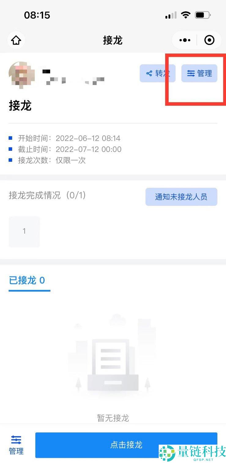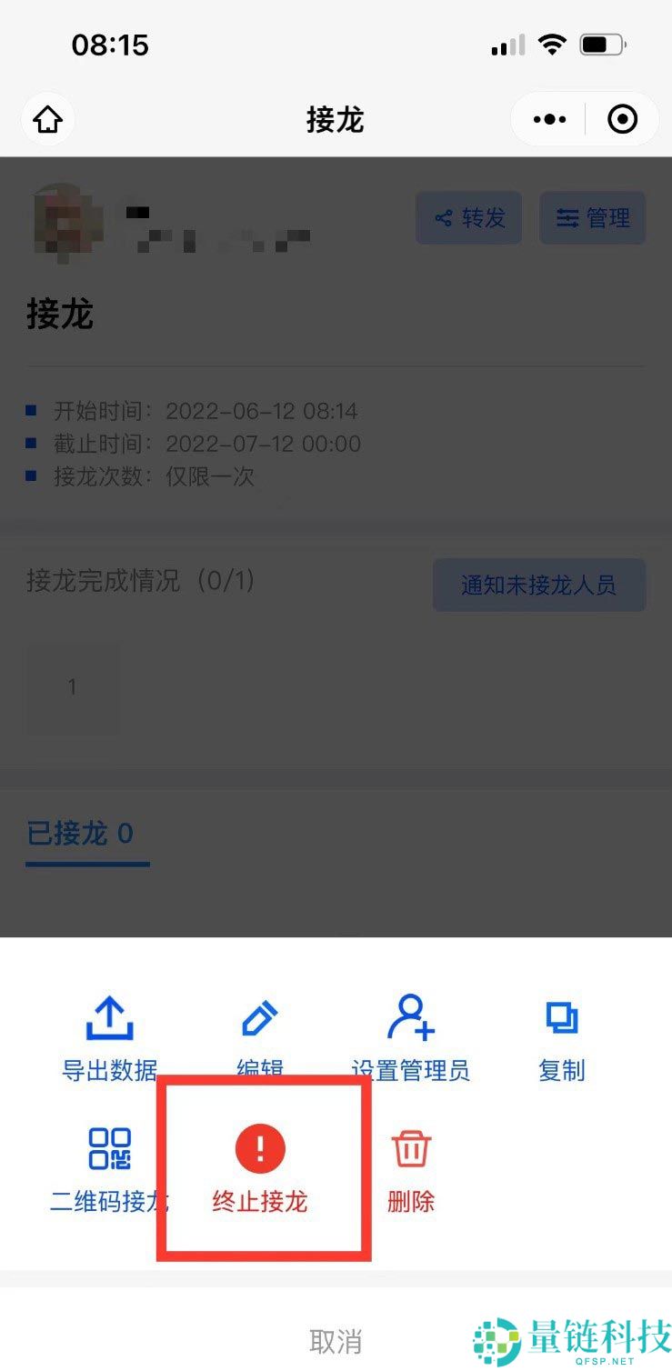 3、接着在管理界面选择终止接龙选项,进入关闭界面。