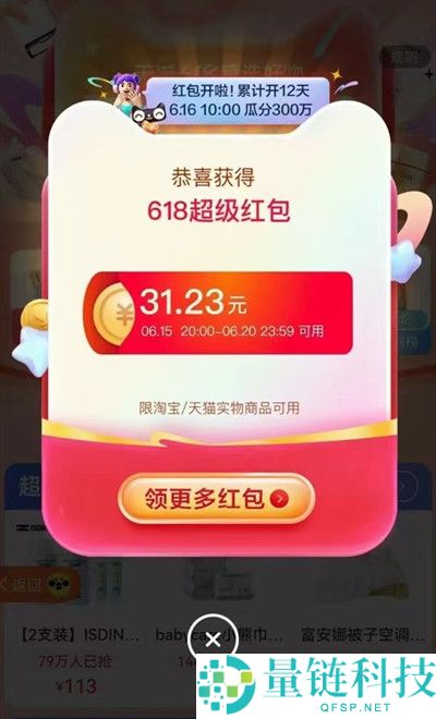 618第二波开买时间为6月15日晚上8点。消息称,在“300-50”超级满减基础上,天猫平台还为88VIP用户开启消费大额券兑换福利。