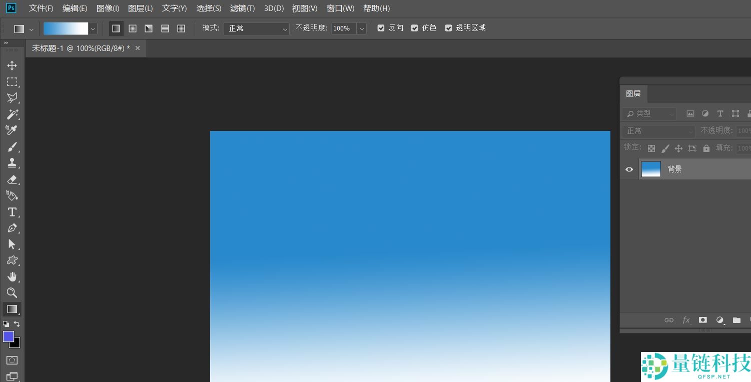 2、然后,我们选择渐变工具,给背景图层添加蓝白色彩渐变背景效果。然后新建一个空白图层。