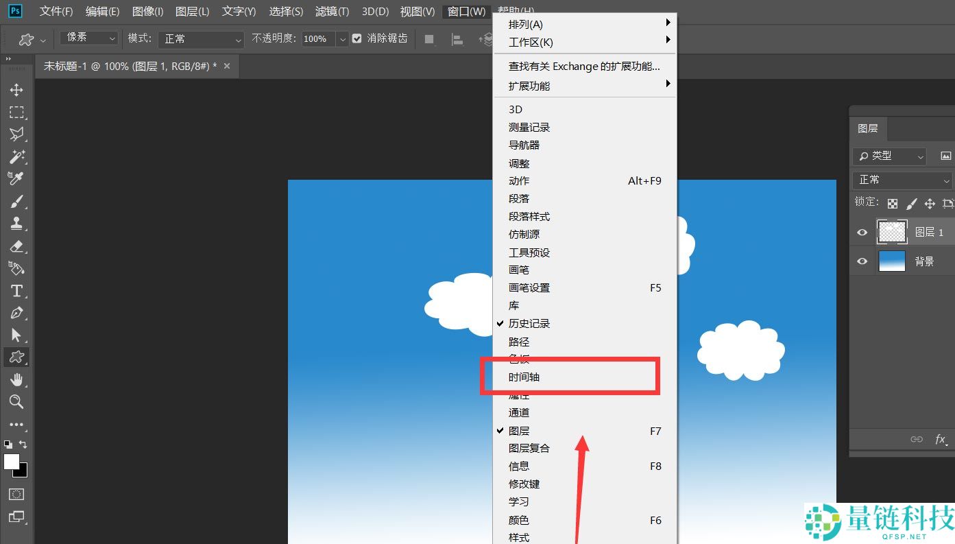 4、我们点击菜单栏的【窗口】——【时间轴】——【创建时间轴】。