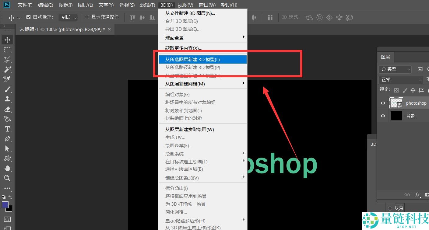 4、我们点击菜单栏的【3D】——【从所选图层新建3D模型】。