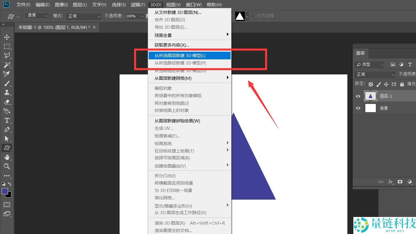 4、接着,我们点击菜单栏的【3D】——【从所选图层新建3D模型】。