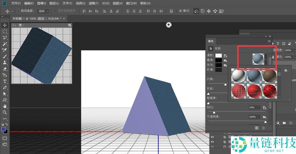 6、最后,我们在属性面板设置自己喜欢的侧面材质,如下图,一个立体三角就完成了。