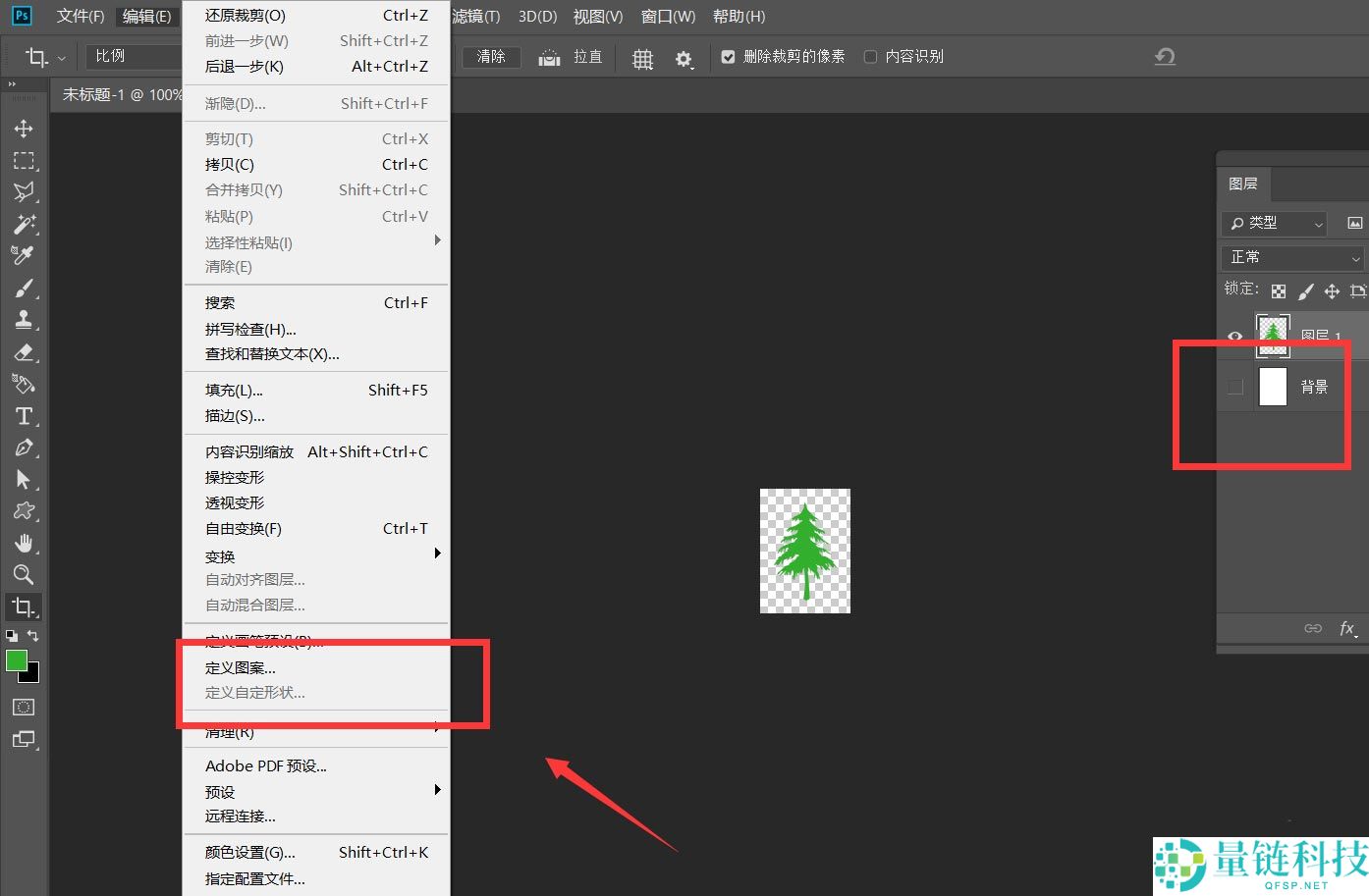 4、我们隐藏背景图层,点击菜单栏的【编辑】——【定义图案】。