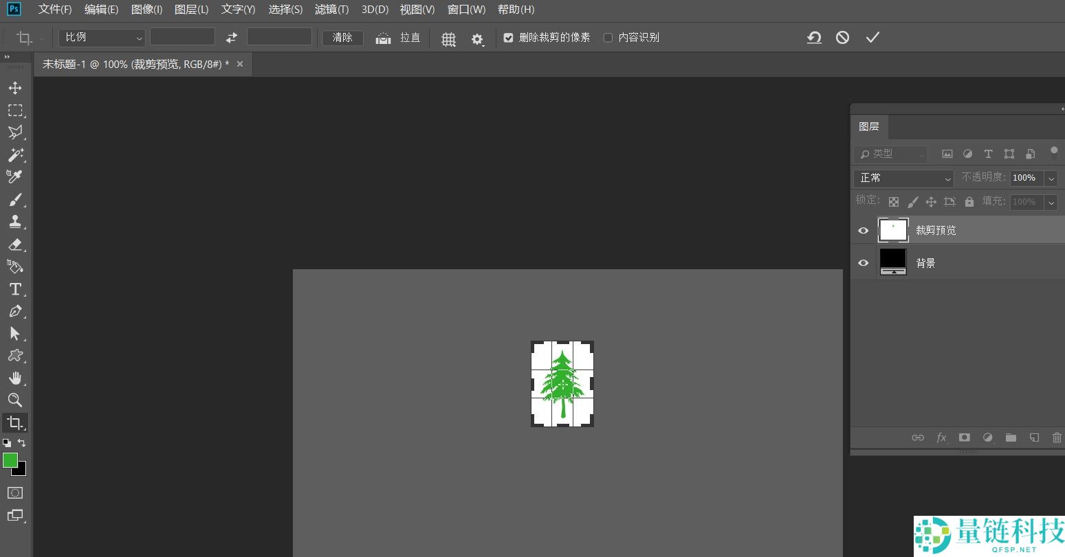 3、接着我们用工具栏的裁剪工具,将画布大小裁剪到图案的大小。