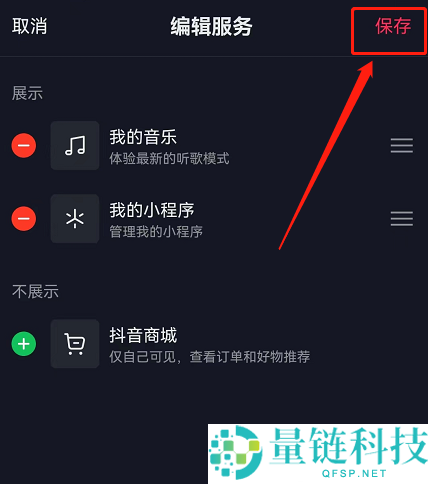 4、随后可以看到抖音商城在不展示页面,点击右上角保存。