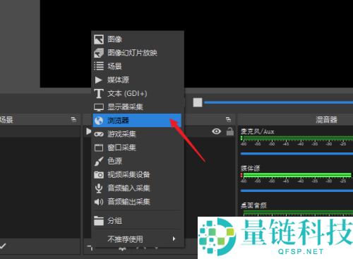 6、在来源面板中再点击【+】号按钮,添加一个新的“浏览器”源窗口。