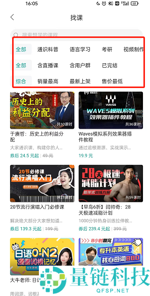 4、最后你就可以根据分类快速找到自己需要的课程了。
