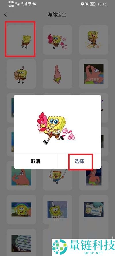 6、在所有的海绵宝宝表情中,用户点击一个自己想要养的海绵宝宝表情就可以;