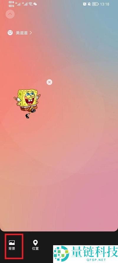 7、选择好之后会回到状态内容编辑界面,在界面中点击下方的【背景】选择一个农场的背景就可以,最后就可以看到拥有一个完美的海绵宝宝还有海底世界背景。