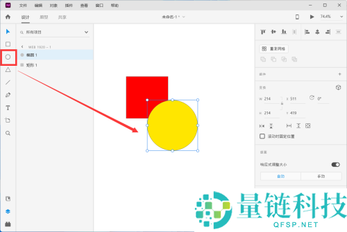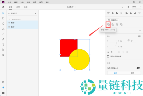 3、最后鼠标选中两个图形,点击右侧属性栏中的【添加】即可。