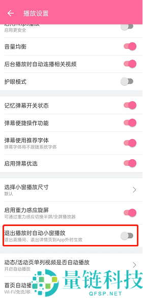 3、最后找到下文的【退出播放时自动小窗播放】右侧按钮就可以了。
