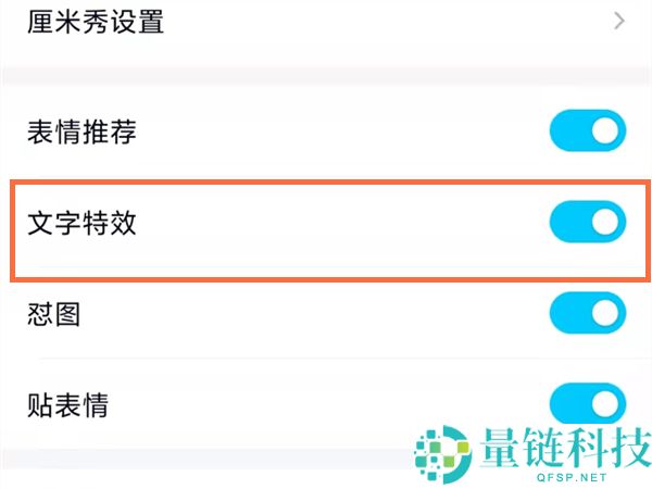 3、最后将【文字特效】的开关开启,在聊天界面发送特殊文字会有特效出现。