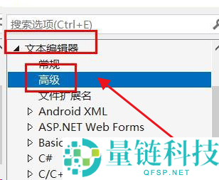 2.然后找到文本编辑器栏目下的高级选项;