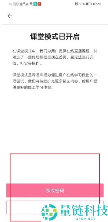 3、最后成功开启哔哩哔哩课堂模式后,可以重新修改密码。