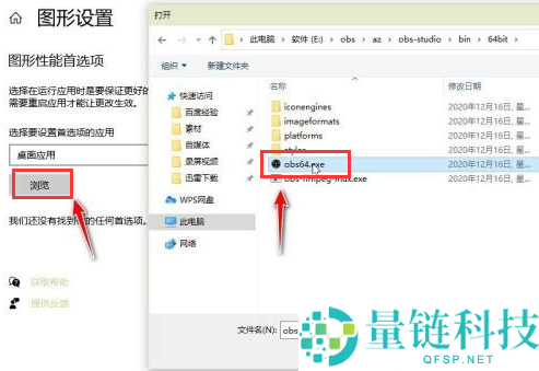 3.接着在打开的新窗口中点击浏览按钮,添加obs应用程序;