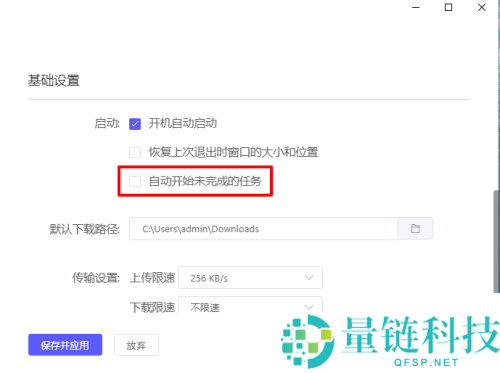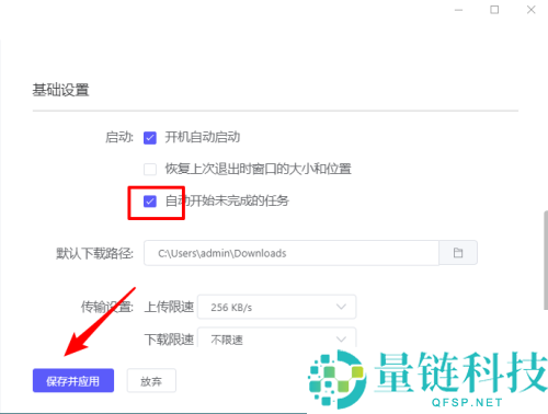 5、最后勾选【自动开始未完成的任务】,点【保存并应用】。