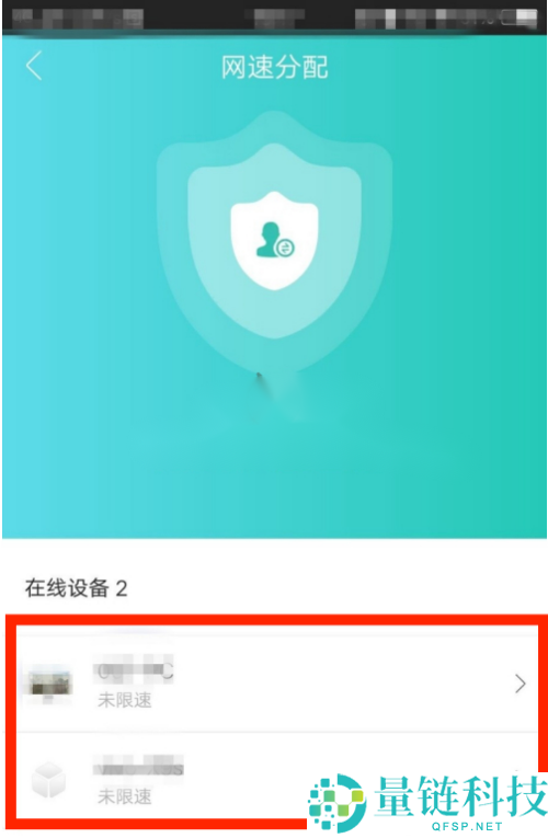 2、然后在网速分配中可以看到连接网络的设备,点击需要取消限速的设备;