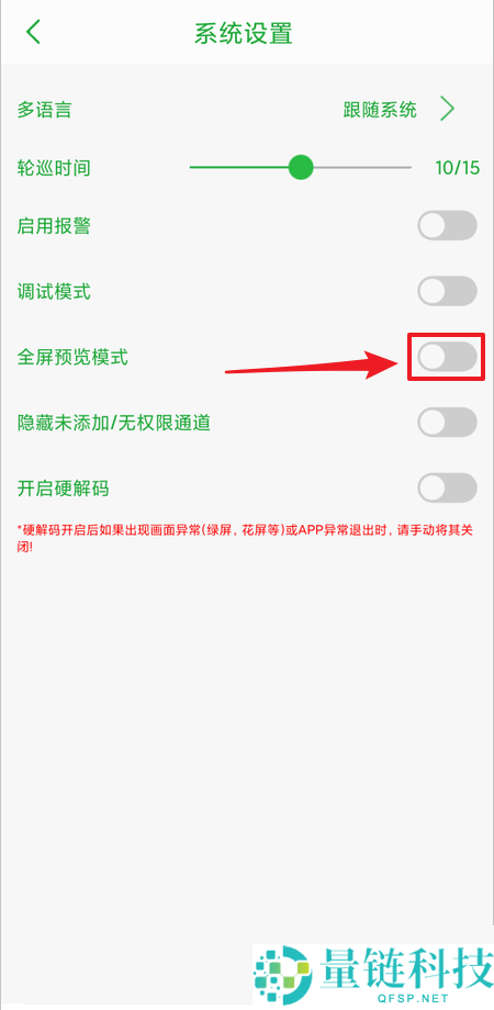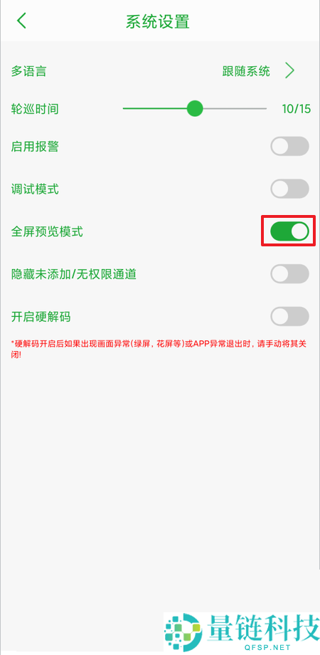 3、在【系统设置】界面点击【全屏预览模式】右侧处于关闭状的开关。