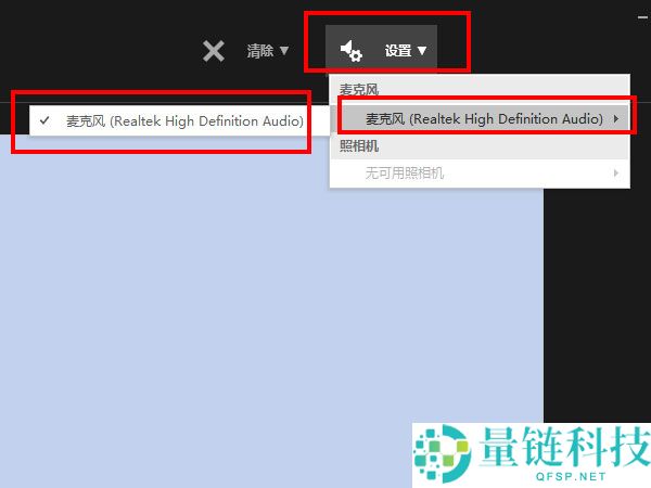 2、然后点击【设置】,选择麦克风,点击录制按钮就能录自己的声音。