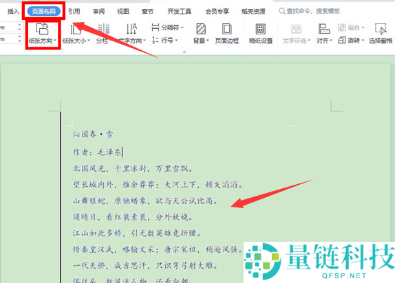 2.输入文本内容后,点击上方页面布局菜单中的纸张方向按钮;