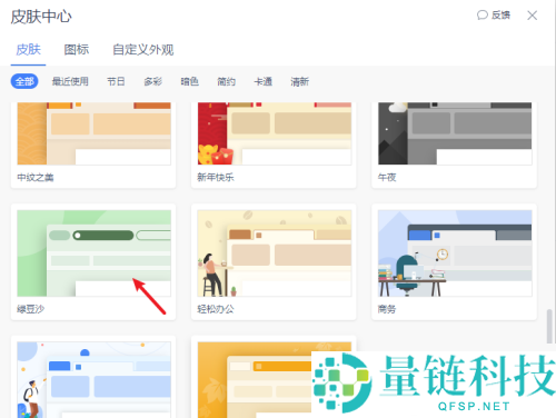 4、接着在WPS“皮肤”设置中选择一种皮肤。如下所示: