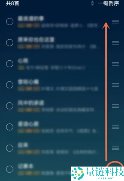 3、接着选择想置顶的歌曲,点击右侧三横线,向上拖到顶部。