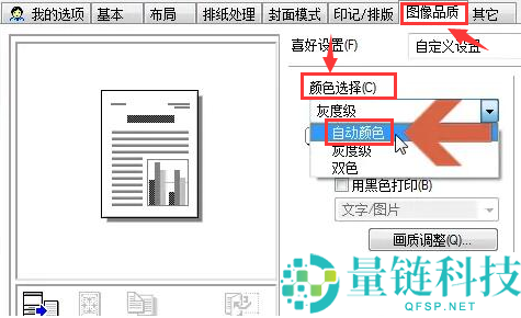 3.随后找到图像品质栏目下的颜色选择菜单,将效果改为自动颜色;