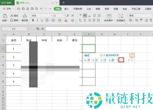 第三步:如下图所示,wps表格中添加上打勾符号。
