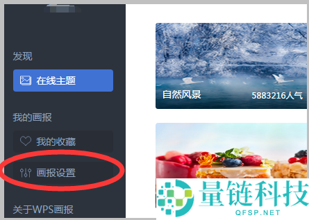 2、然后点击进入“WPS画报中心”的界面后,在左侧的菜单栏目中找到“画报设置”的选项。