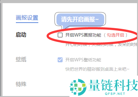 4、最后点击其“开启WPS画报功能”前面的勾选框,将启动功能取消,设置即可自动保存取消状态。