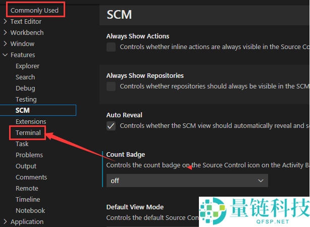 2.然后在跳转的commonlyused页面中找到terminal栏目;