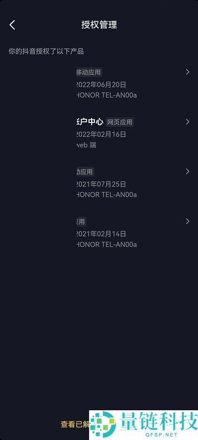 5、最后在这里就可以看到抖音授权的全部软件了。