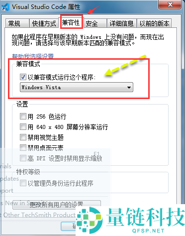 2.然后找到并打开属性窗口,在兼容性一栏中勾选以兼容模式运行程序按钮;