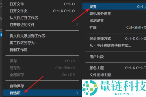 3、接着在子菜单中依次点击“首选项”中的“设置”项。