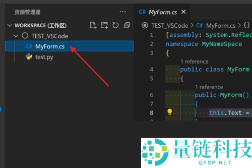 2、然后在左侧资源管理器双击打开一个cs文件。