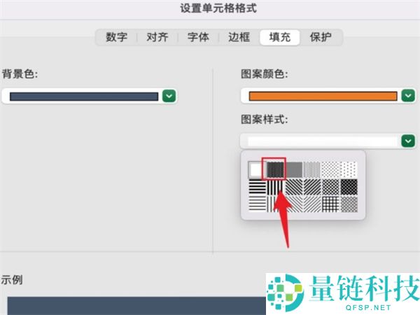 3、最后点击需要的底纹背景色,选择图案样式,点击确定即可。