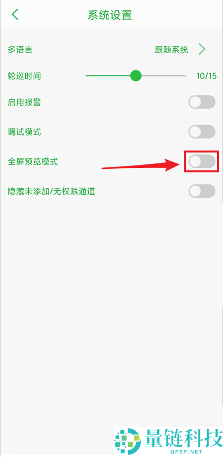 3、最后在【系统设置】界面,点击【全屏预览模式】关闭即可。