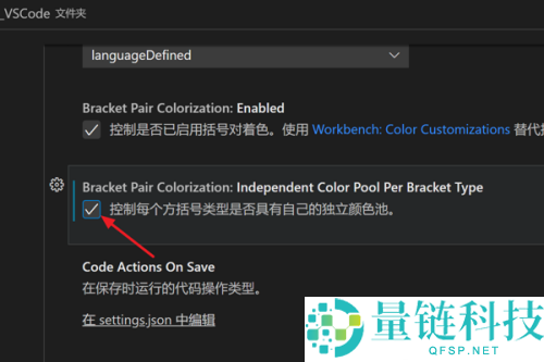 4、最后在设置页面中,勾选第2个“Bracket Pair Colorization”栏下方的方框,即可设置不同类型括号有不同颜色。