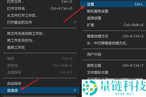 3、在下拉菜单中依次点击“首选项”中的“设置”项。