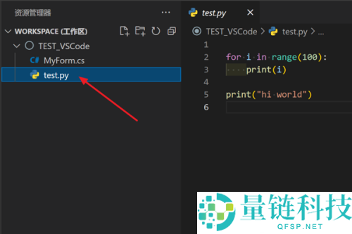 2、然后在左侧资源管理器双击打开一个Python文件。