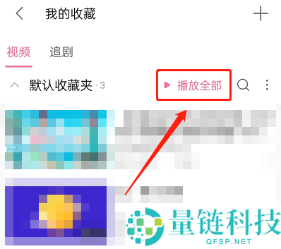 2、然后找到默认收藏夹,点击右侧播放全部。