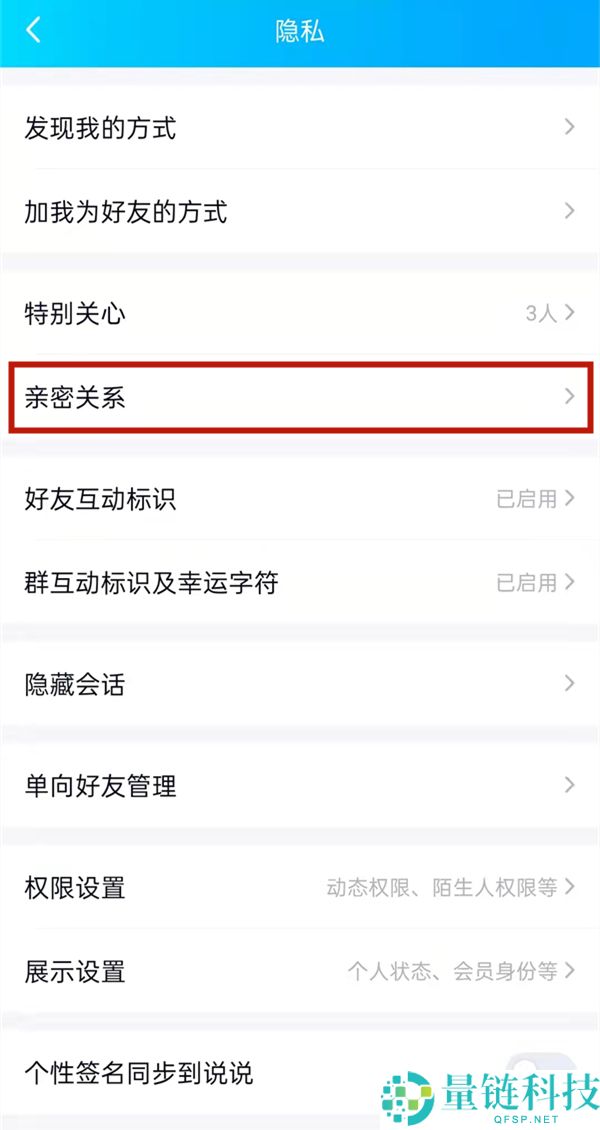 3、跟着点击亲密关系。