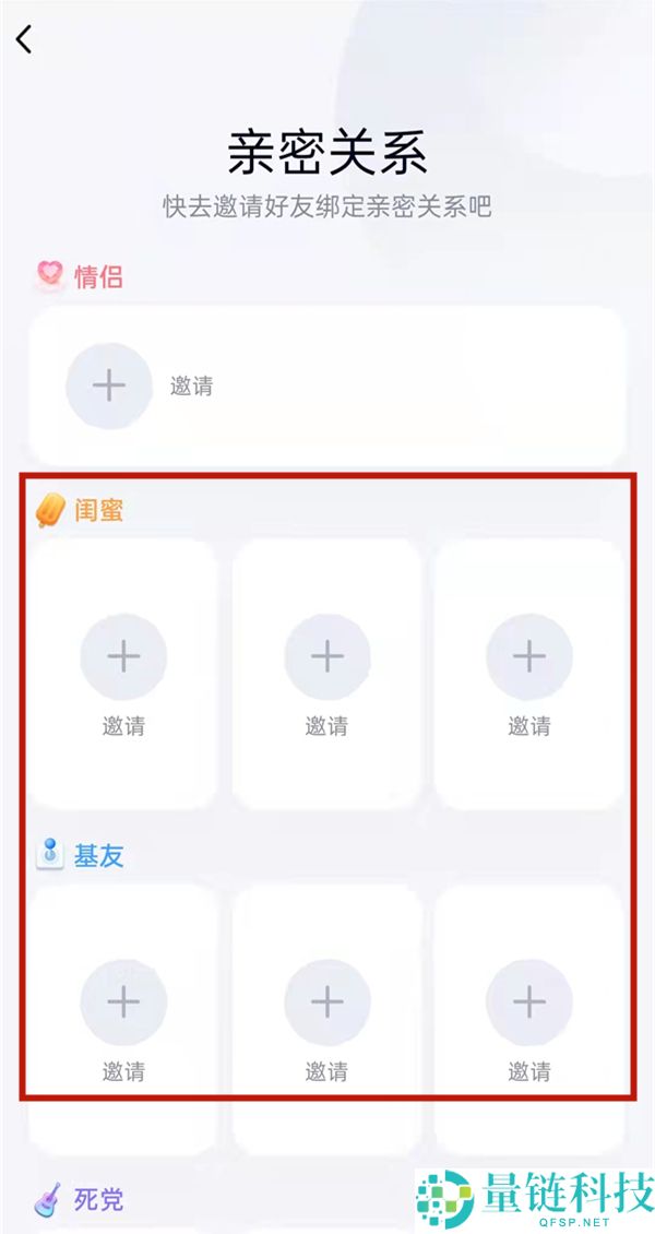 4、最后在闺蜜关系一栏下,邀请好友后等待对方同意即可绑定关系。