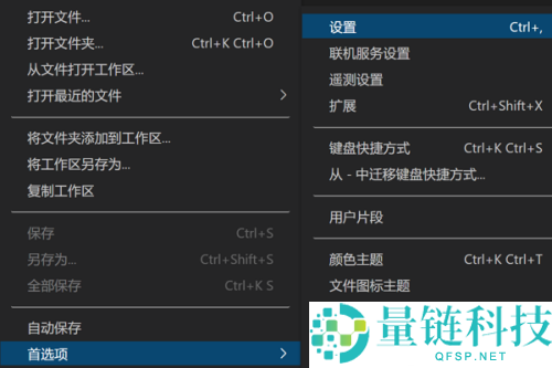 3、在下拉菜单中,依次点击“首选项->设置”项。