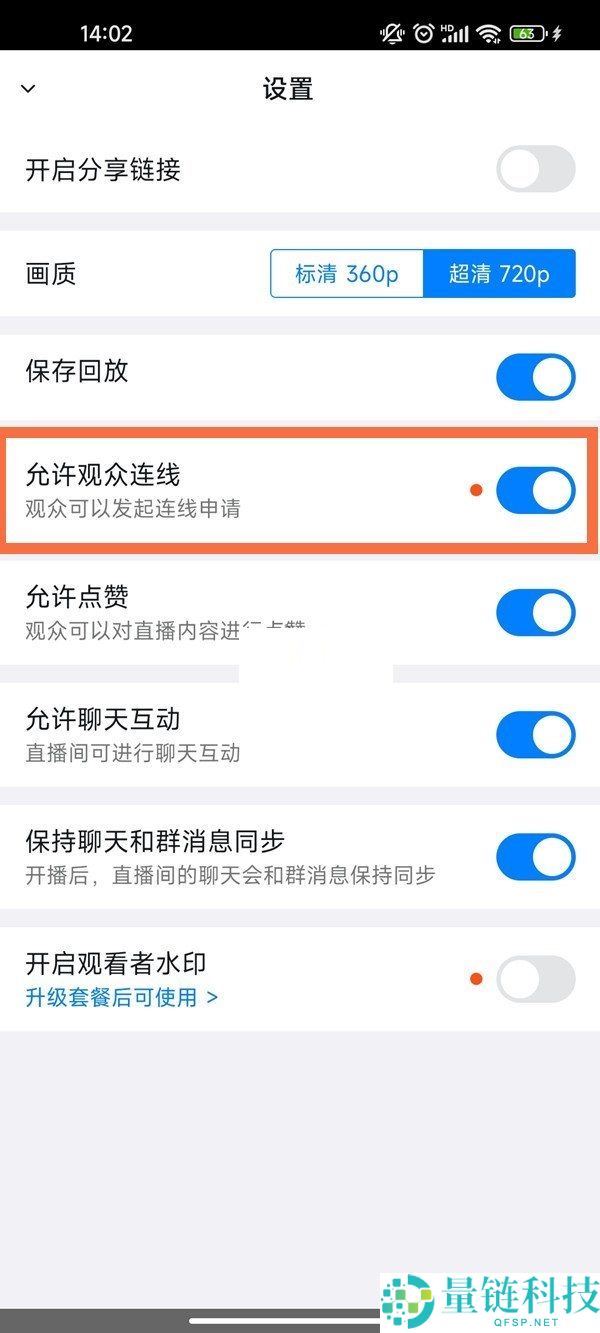 3、跟着打开允许观众连线功能即可。